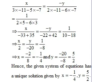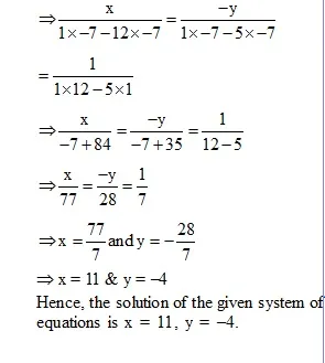 Ex. Solve the following systems of equations by using the method of cross-multiplication :