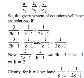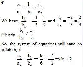 Hence, the given system of equations will have no solution, if k = 2.