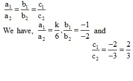 where a1 = k, b1 = –1, c1 = –2 and