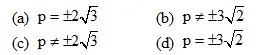 4. If the system of linear equations px + 3y = 9 and 4x + py = 8 has unique solution, then