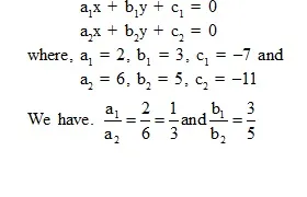i.e., lines represented by equations (1) and (2) are not parallel