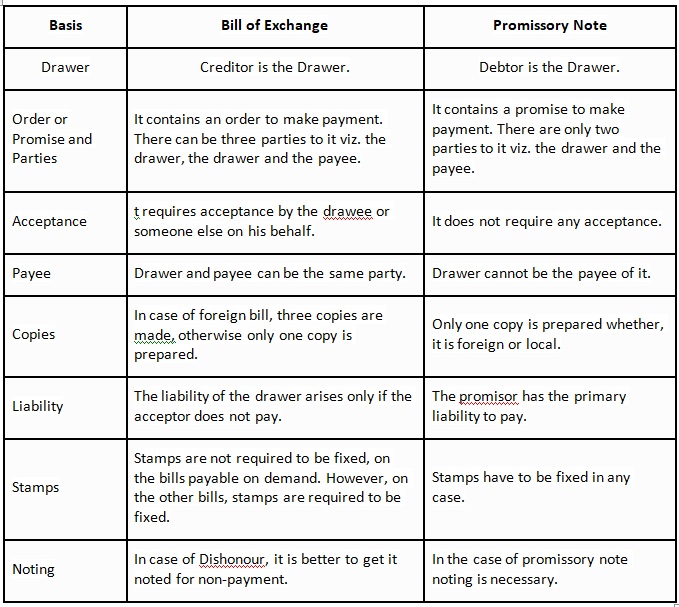 1. Differentiate between bill of exchange and a promissory note.