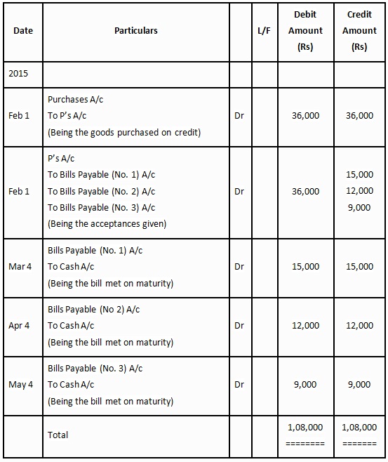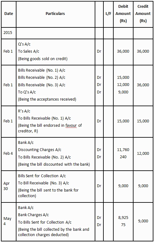 2. P draws on Q three bills of exchange for Rs. 15,000, Rs. 12,000 and Rs. 9,000 respectively for