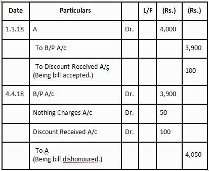 settlement of the claim. At its due date the bill is dishonoured. Noting charges Rs.50 are paid by A.