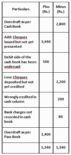 I. R’s overdraft as per the Pass Book Rs.12,000 as on 31st March