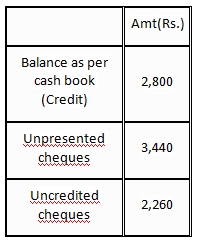 III. Cheques amounting to Rs.3,500 had been paid into the bank for collection but of this only Rs.500 had