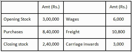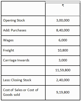7. Cost of Goods Sold = Total Purchases – Returns Outward + Direct Expenses = 8,40,000.