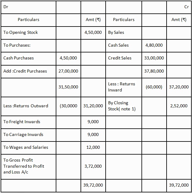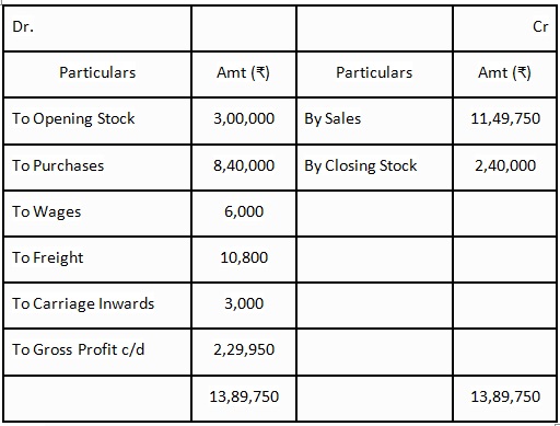 • Gross profit = Goods Sold – Cost of Goods Sold = 6,10,000 – 5,60,000 = Rs. 50,000.
