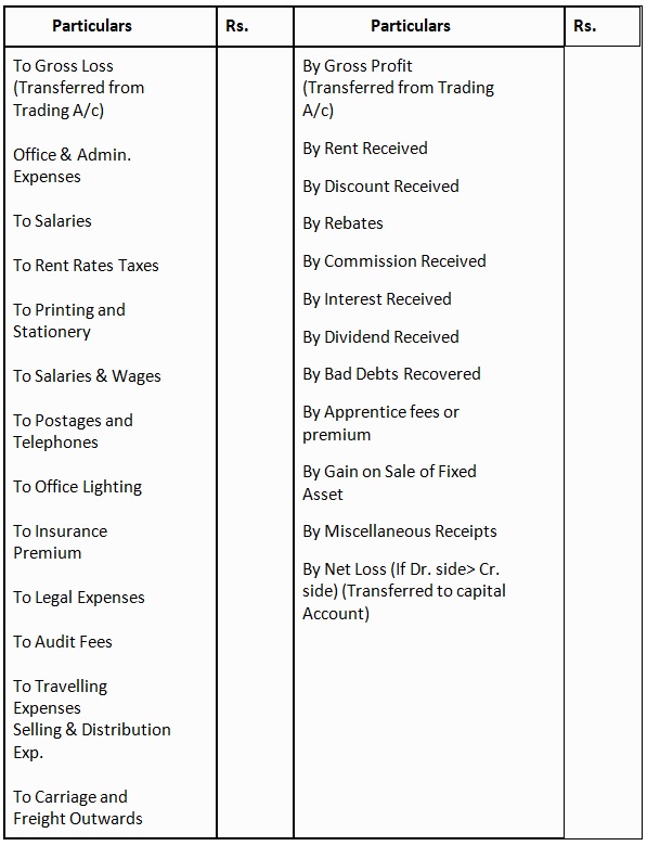 Format of Profit and loss Account: