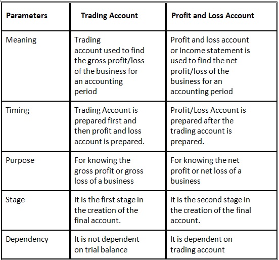 Difference between Trading and Profit and Loss Account: