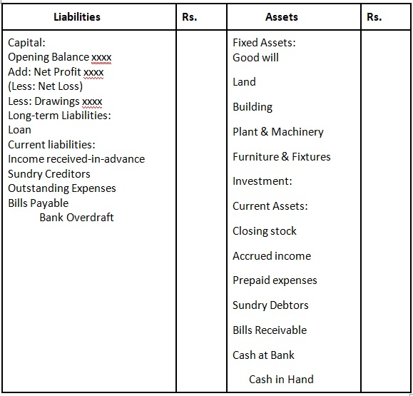 Format of Balance sheet: