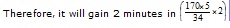 monday (12 p.m.) to 2 p.m. on the following monday or in other words, the watch gains minutes in 170 hours,