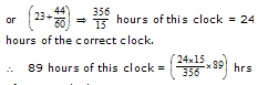 Therefore, it is clear that in 89 hours this clock loses 1 hour and hence the correct time is