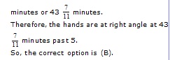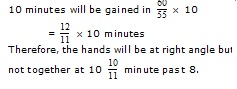 Ex.11 At what time between 4 and 5 o' clock will the hands of a clock be at right angle ?