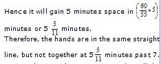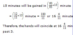 Sol. From the figure we find what minute hand is 25 minutes space apart from hour hand. In order to coincide it has to gain 25 minute space.