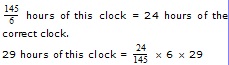 29 hours of this clock = 28 hours 48 minute of the correct clock.