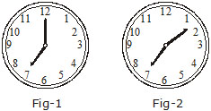 Figure (1) shows the positions of hands of the clock at 7 and figure (2) shows the positions of hands of clock