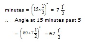 Sol. At 15 minutes past 5, the minute hand is at 3 and hour hand slightly ahead of 5. Now, the angle through which hour hand shifts in 15
