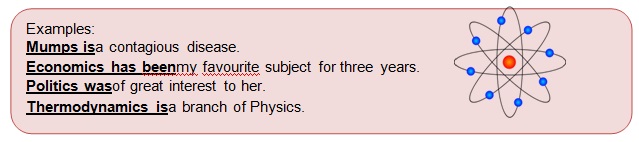 • Singular nouns ending with ‘–s’ are used with singularverbs.
