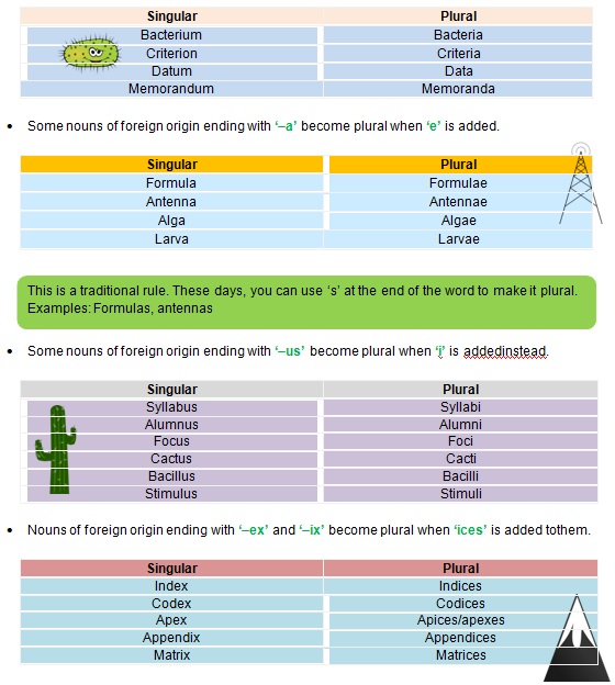 • Some singular foreign nouns ending with ‘–um’ or ‘–on’ become plural when the lettersare replaced by‘a’.