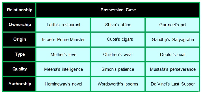 Apart from possession, the possessive case also denotes relationships such as origin, type, quality and