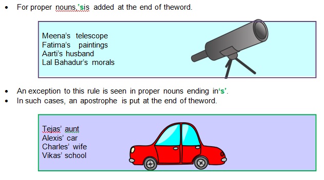 • An exception to this case will be when the noun itself ends with the letter ‘s’.