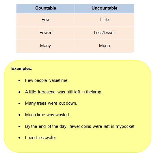 • ‘Much’ and ‘less’ are the adjectives associated withuncountable nouns.
