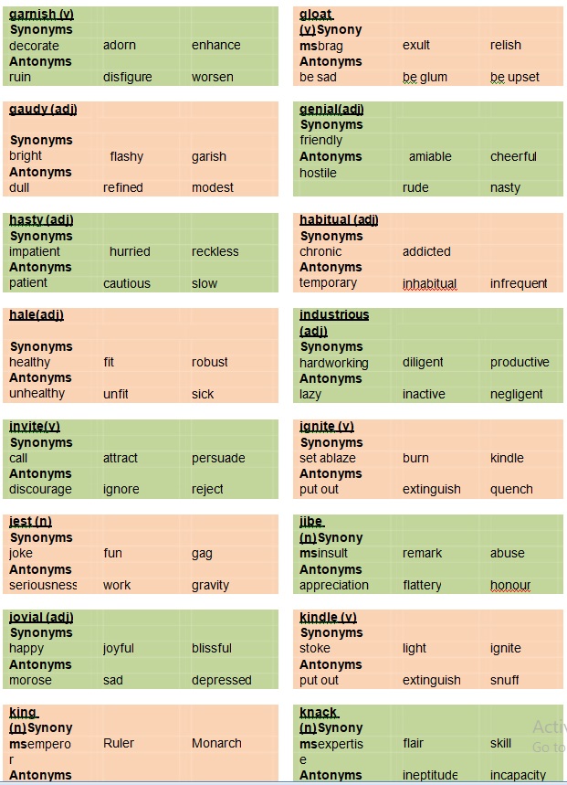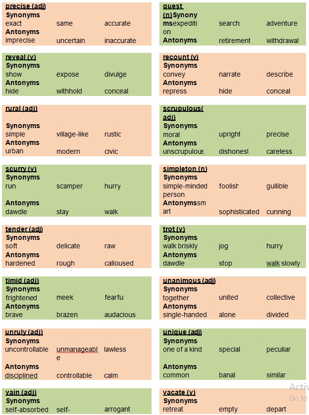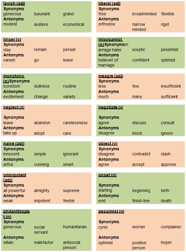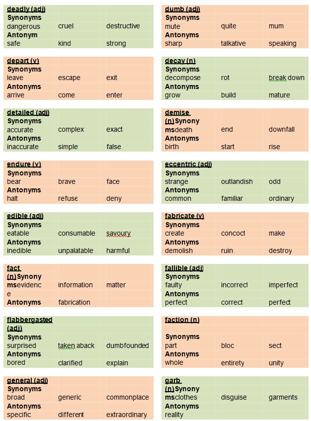 We shall now look at common synonyms and antonyms used in everyday life.