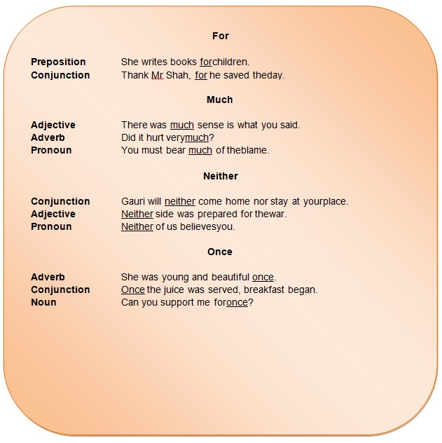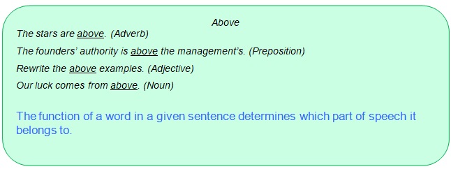 The same word can belong to different parts of speech according to how it is used in sentences.