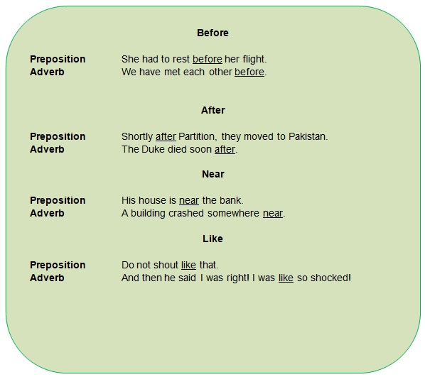 Some words can be used as both prepositions and adverbs.
