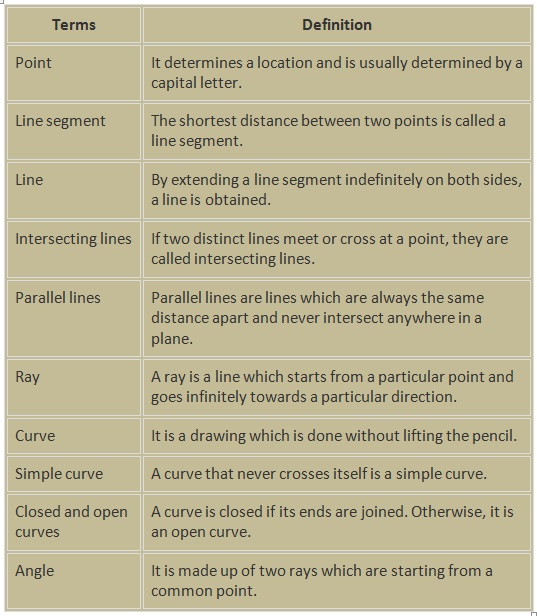 or edges. The point where two line segments meet is called vertex or corners, henceforth an angle is formed. An