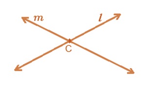 • Lines l and m here have a common point P, hence they are intersecting lines with P being the point of intersection.