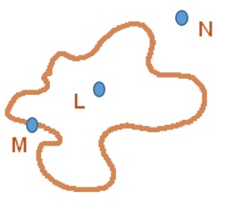 There are three important parts of a closed curve. In the figure below, L is in the interior of the curve,