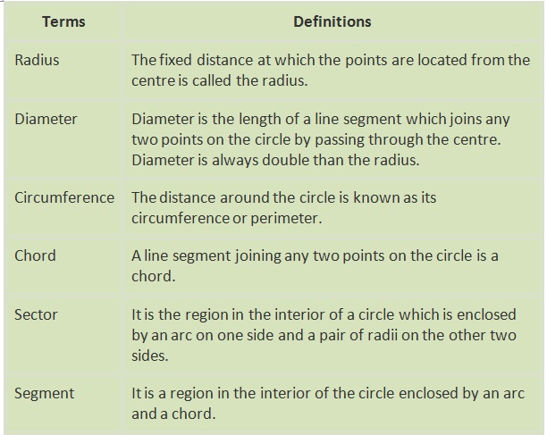 same distance from a fixed point which is the centre. A few important terms related to circles are: