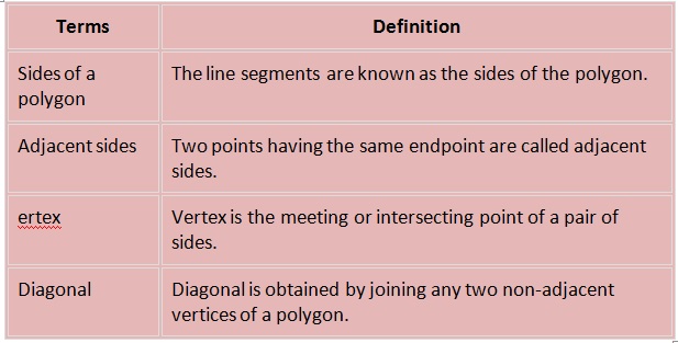 and so on. A few important terms related to polygons are.
