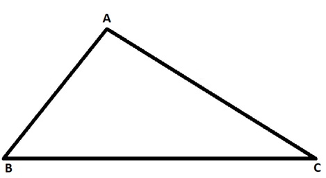 In this triangle, AB, BC, and AC are sides of the triangle and A, B, C are the vertices of the triangle. Also, the