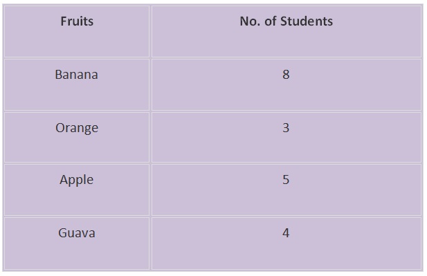 • Example: In a class, 20 students were asked to choose one fruit from Banana, Orange, Apple and Guava.