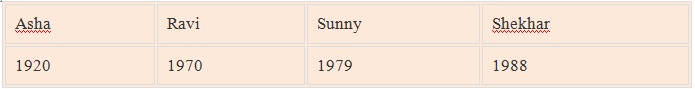 Example: Arrange the following data according to the birth year.