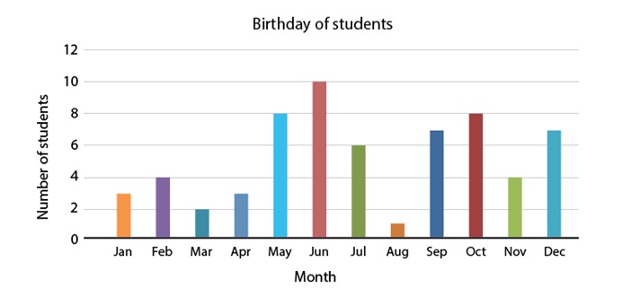 The following is a bar graph showing the birthday of students in a class.