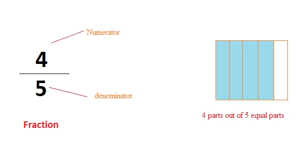 Here the Denominator shows the part whole has been divided and numerator shows the part