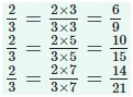 The equivalent fraction of a given fraction is obtained by multiplying both the numerator and