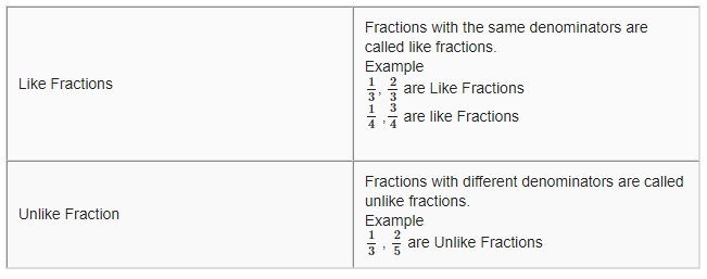 Like Fractions and Unlike Fractions