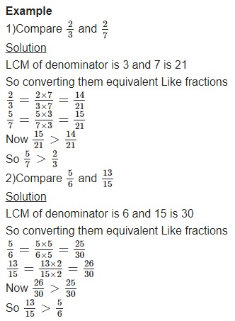 into equivalent fraction such that they become like fractions.Then comparison is simple. So here are the steps