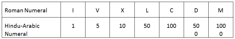 There are seven symbols to represent numbers of Hindu-Arabic system in Roman numeration.
