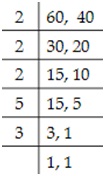 ∴ LCM = 2 × 2 × 3 × 5 = 60