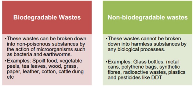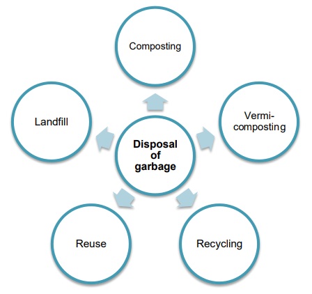 • Garbage includes spoilt food, vegetable peels, leaves, wood, grass, paper, leather, cotton, cattle