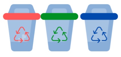 • Blue-coloured bins: Recyclable waste like plastic, metal and glass are collected in the blue-coloured bins.