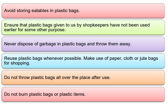 • Reuse the plastic bags as far as possible many times before disposing of them.