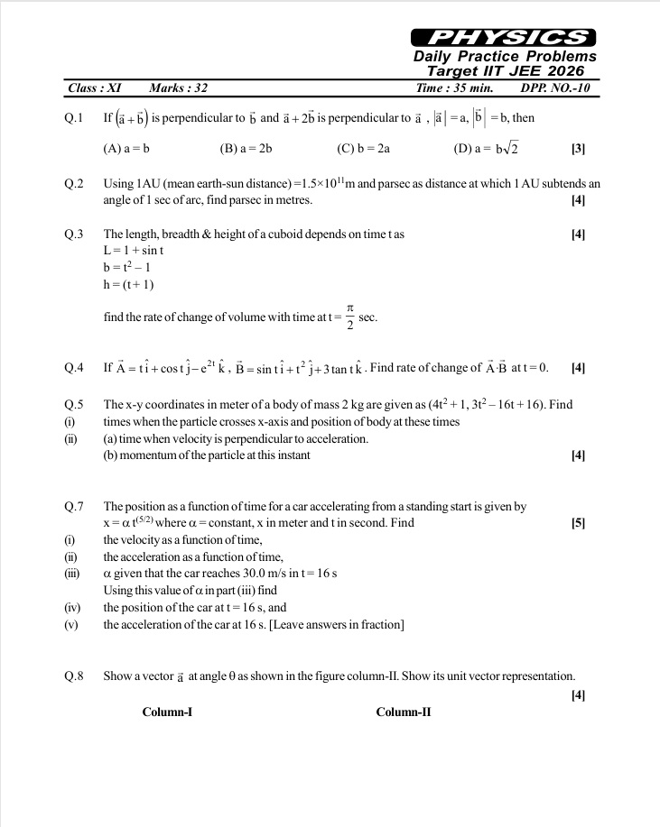 Inquiry Now ! (IIT JEE DPPS 11TH CLASS PHYSICS)